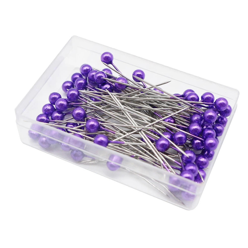 100Pcs/Box Colorful Round Pearl Head Needles Stitch Straight Push Sewing Pins Dressmaking DIY Accessories Positioning Tools