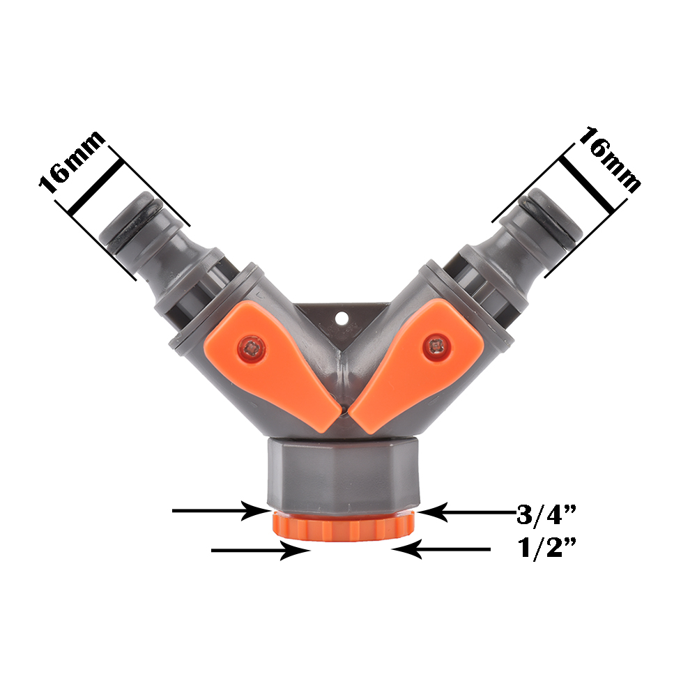 2-Way Garden Tap Water Splitter Female 1/2 3/4 Garden Hose Y Splitter Watering Adjustable Switch