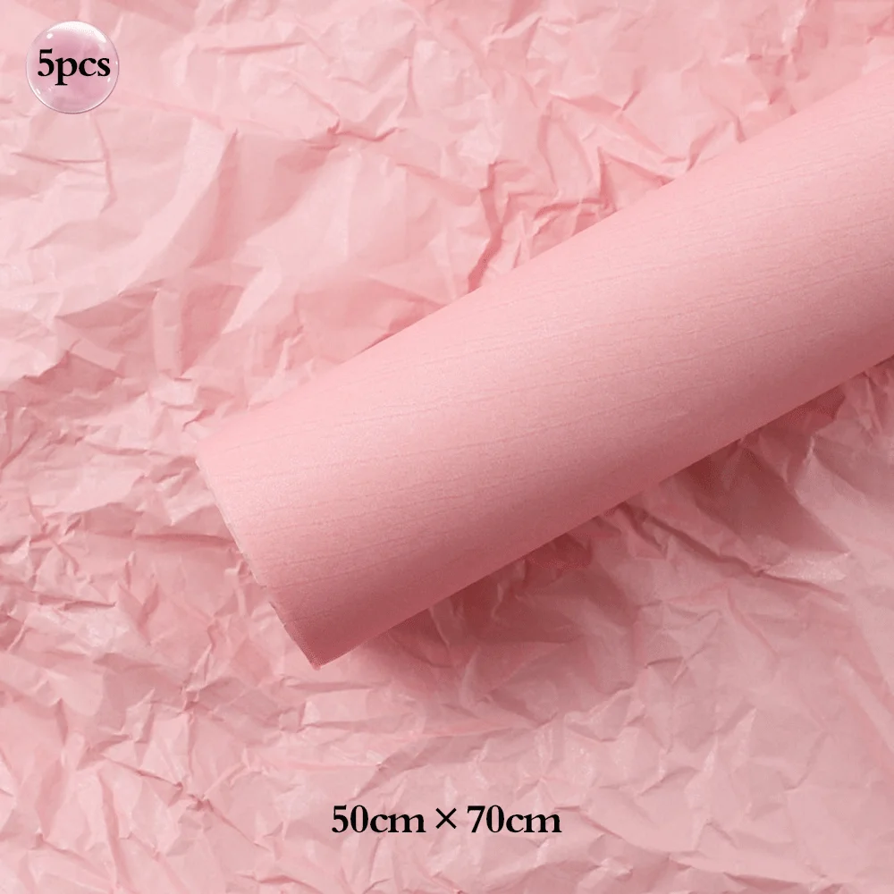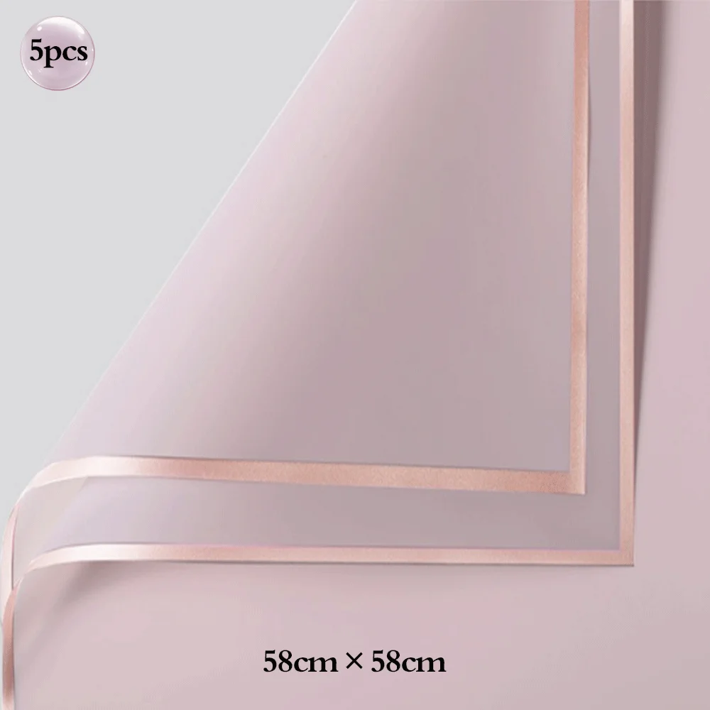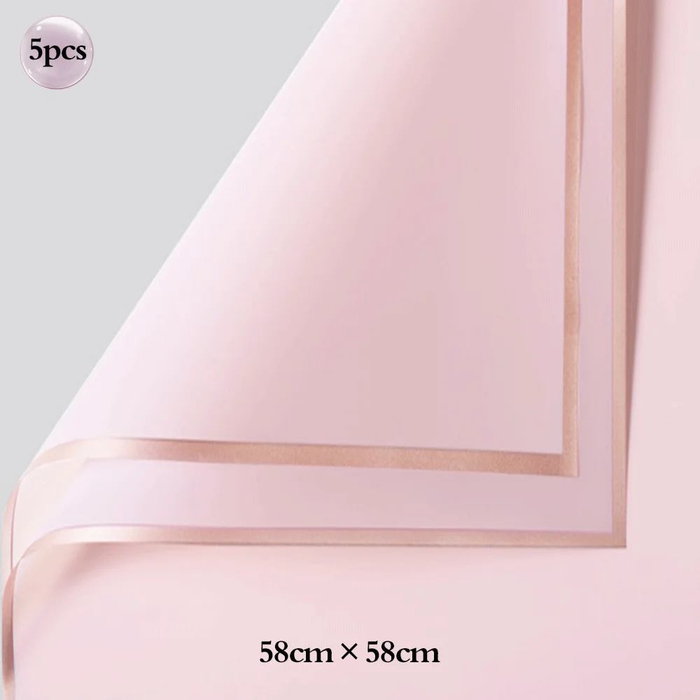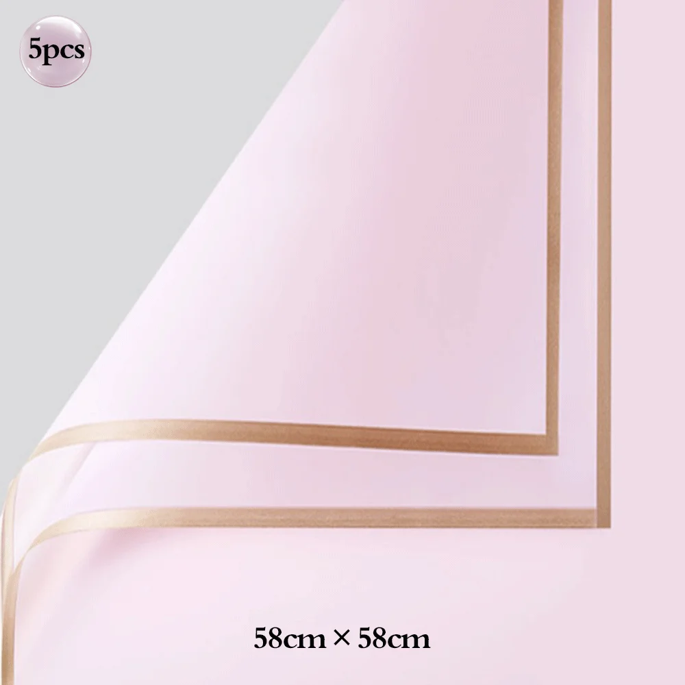 5pcs Bouquet Flower Wrapping Papers Golden Edge Ribbons Korean Paper for Valentine's Day Wedding Birthday Packing Decors