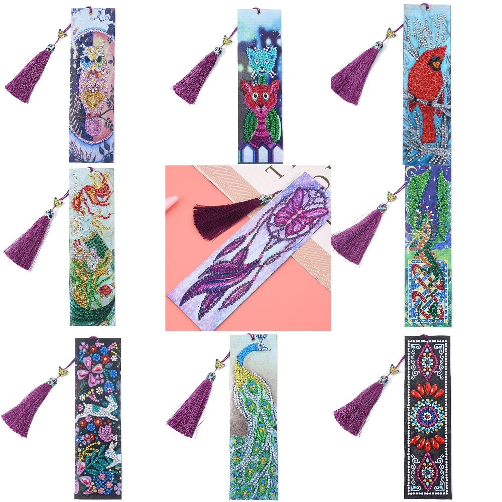 DIY Special Shaped Diamond Painting Leather Bookmark Tassel Book Marks Book Page Mark for Books Christmas Animal, Flower