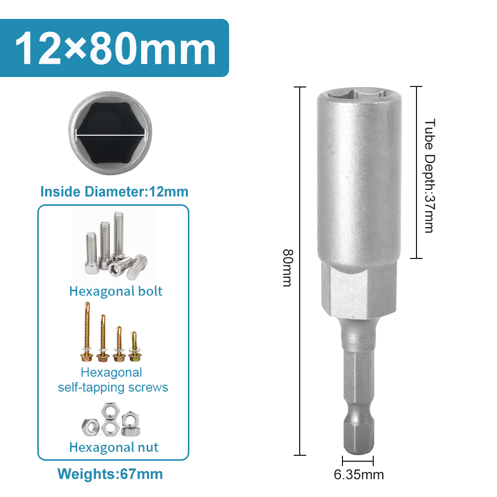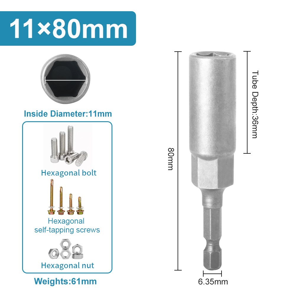 Length Deepen Impact Socket Adapter 5-19mm Power Nut Driver Socket Set 1/4-inch Hex Shank Screwdriver Key Head Hand Tool 1PC